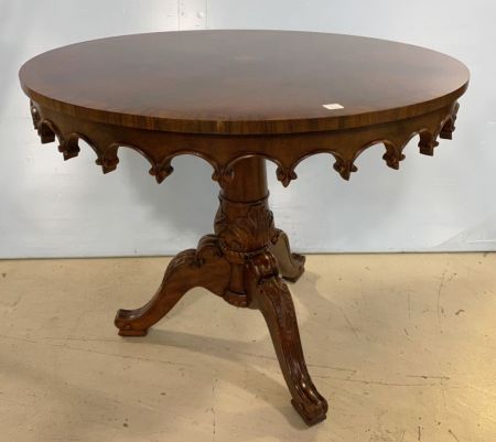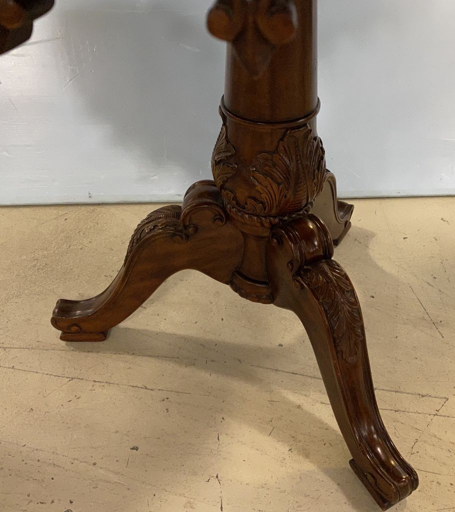 Reproduction Italian Round Parlor Table, pedestal table, flue de lis border trim, star inlaid medallion, cherry, light wear, 30"h., 36"dia. Reproduction Italian Round Parlor Table, pedestal table, flue de lis border trim, star inlaid medallion, cherry, light wear, 30"h., 36"dia.