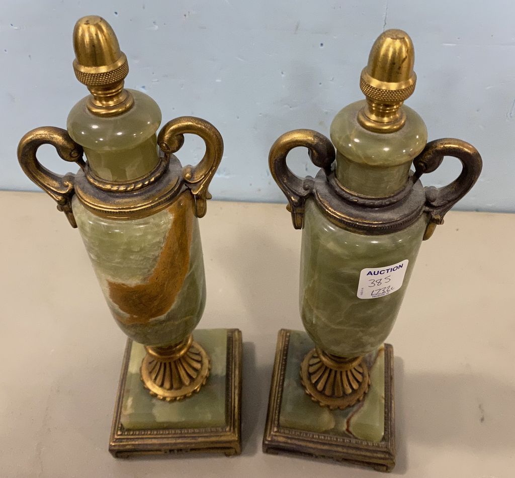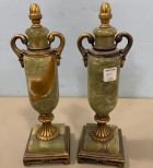 Decorative Marble Urns, footed, swan handled, 13"h Decorative Marble Urns, footed, swan handled, 13"h