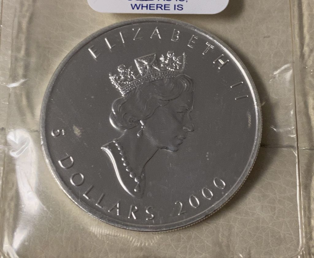 2000 Canada Elizabeth II 5 Dollar, 99.99 silver, in plastic case. 2000 Canada Elizabeth II 5 Dollar, 99.99 silver, in plastic case.
