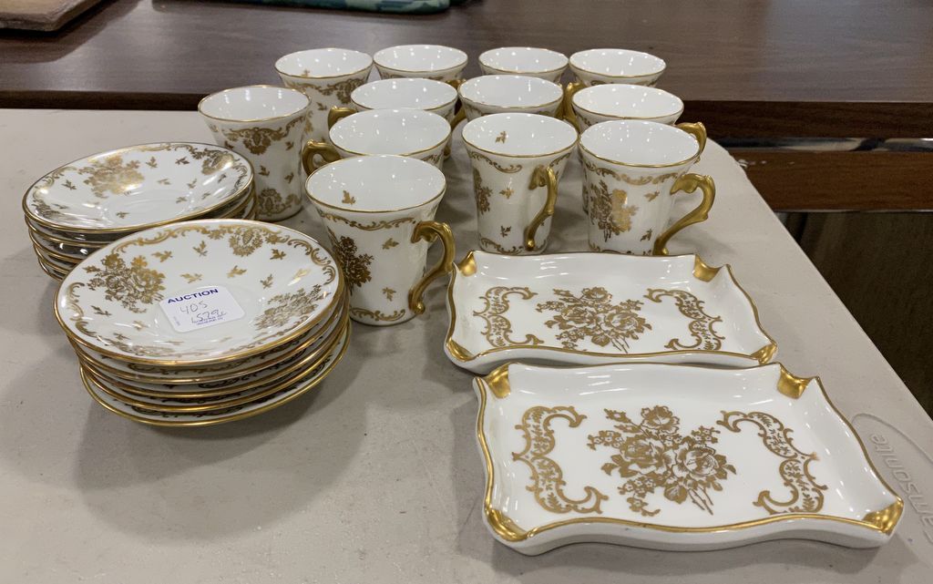 Hand Painted Pote De Limoges Pieces, 12 cups, 10 saucers, dishes. Hand Painted Pote De Limoges Pieces, 12 cups, 10 saucers, dishes.