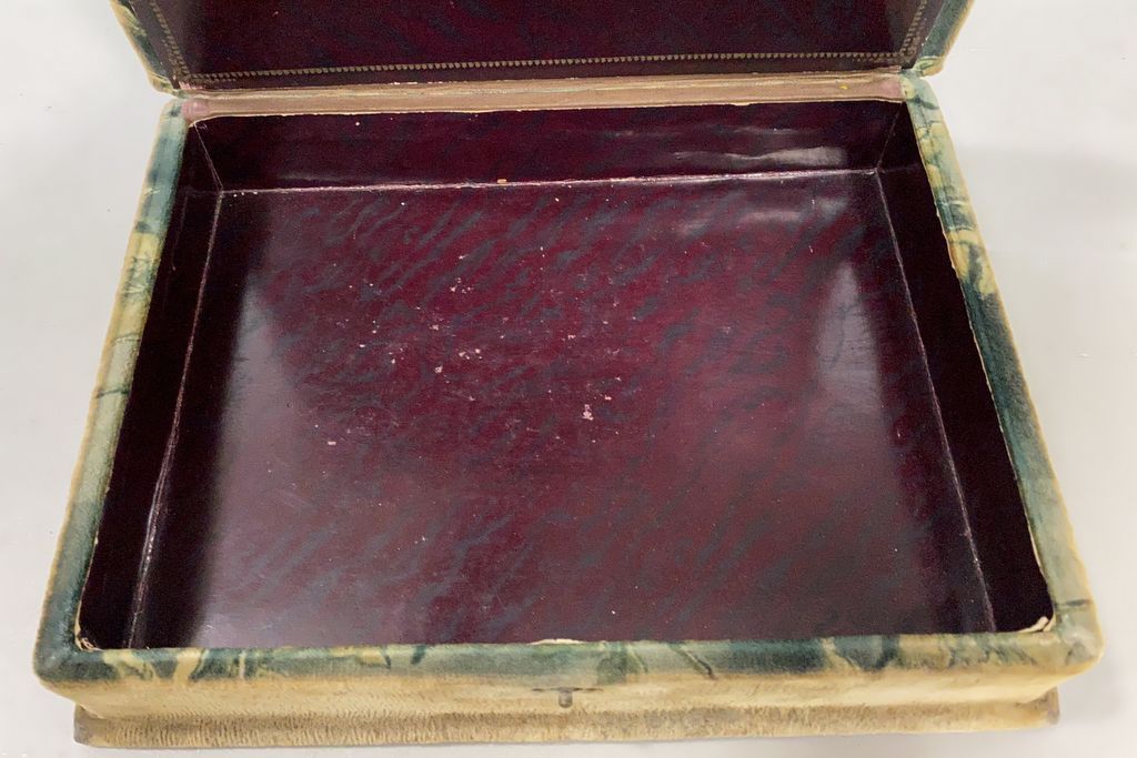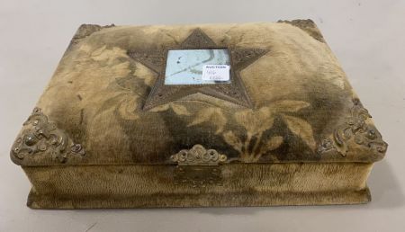 Vintage Velvet Jewelry Box, lift top, mirror inset, with brass latch, 2 1/2"h., 11 1/2"w. Vintage Velvet Jewelry Box, lift top, mirror inset, with brass latch, 2 1/2"h., 11 1/2"w.