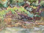 "Bridge at Japanese Garden II" Acrylic by McAillough 1985, framed, 26"h., 32"w. "Bridge at Japanese Garden II" Acrylic by McAillough 1985, framed, 26"h., 32"w.