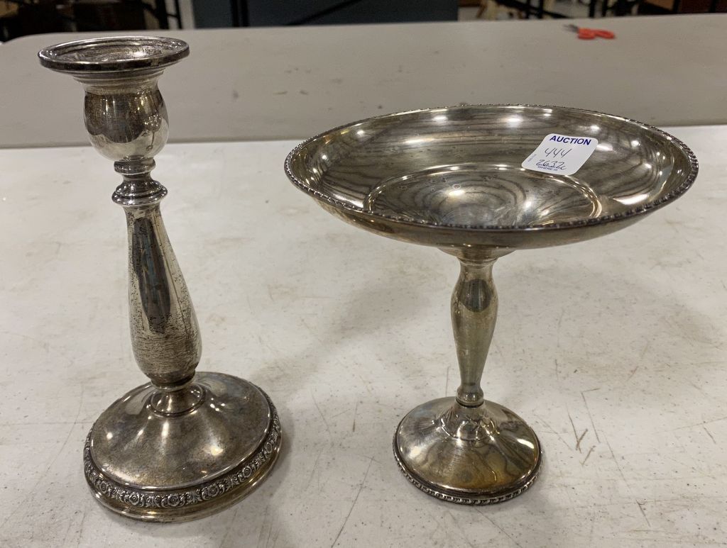 Weighted Sterling Compote, has a bent, and Candle Stick Weighted Sterling Compote, has a bent, and Candle Stick