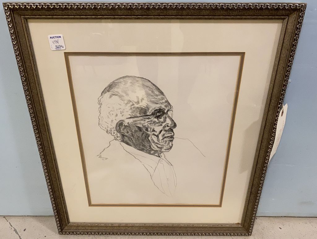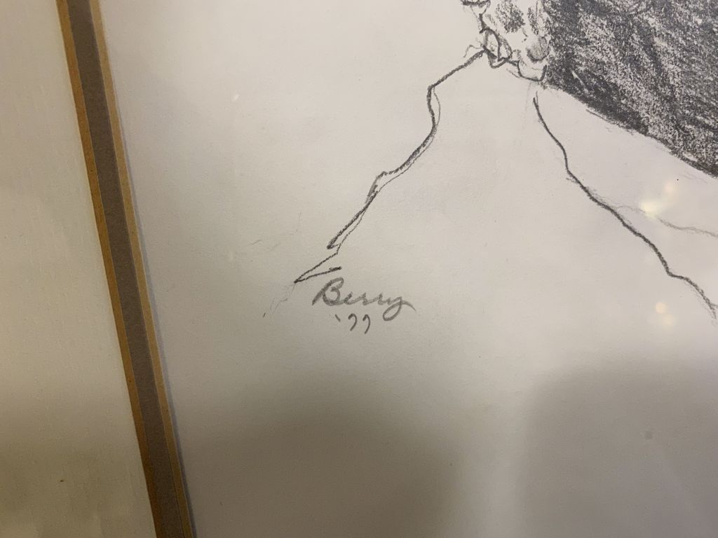 Christine Berry Drawing Portrait of Man, signed left middle 1979, matted, framed, 20"h., 18"w. Christine Berry Drawing Portrait of Man, signed left middle 1979, matted, framed, 20"h., 18"w.