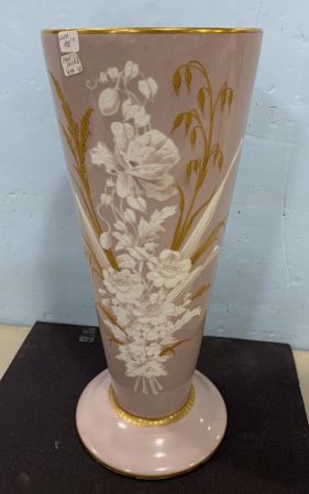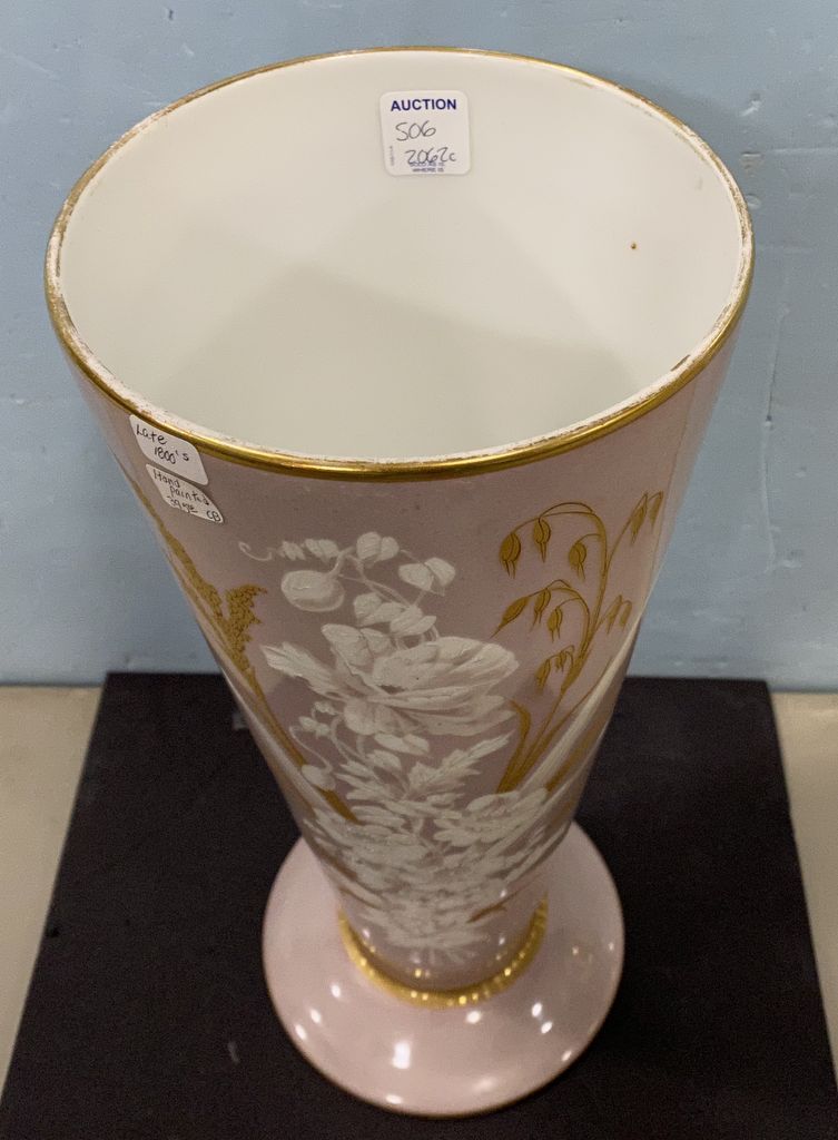 Late 1800's Hand Painted Porcelain Vase, pink with floral designs, 15"h., 6 1/2"dia. Late 1800's Hand Painted Porcelain Vase, pink with floral designs, 15"h., 6 1/2"dia.