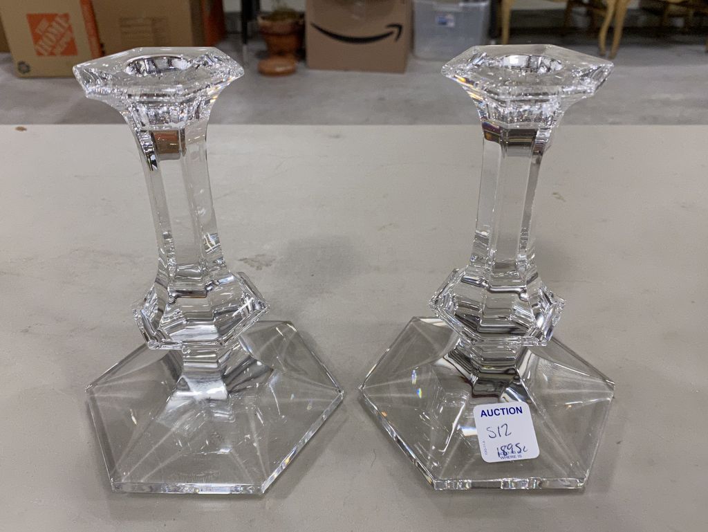 512 Pair of Val St. Lambert Crystal Candle Sticks