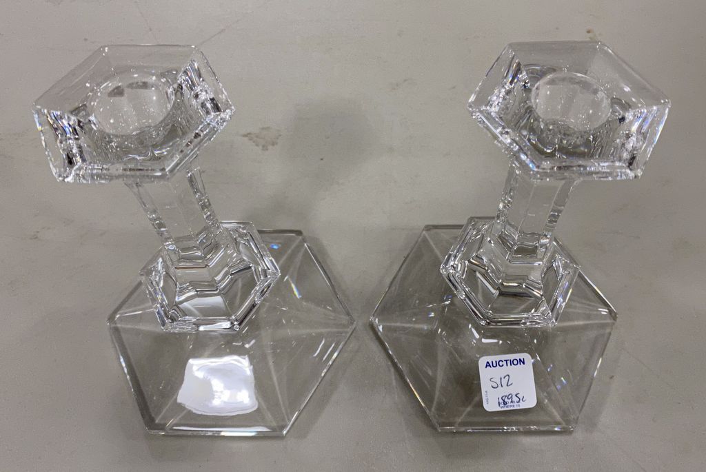 Pair of Val St. Lambert Crystal Candle Sticks, signed, 7"h. Pair of Val St. Lambert Crystal Candle Sticks, signed, 7"h.
