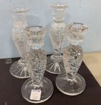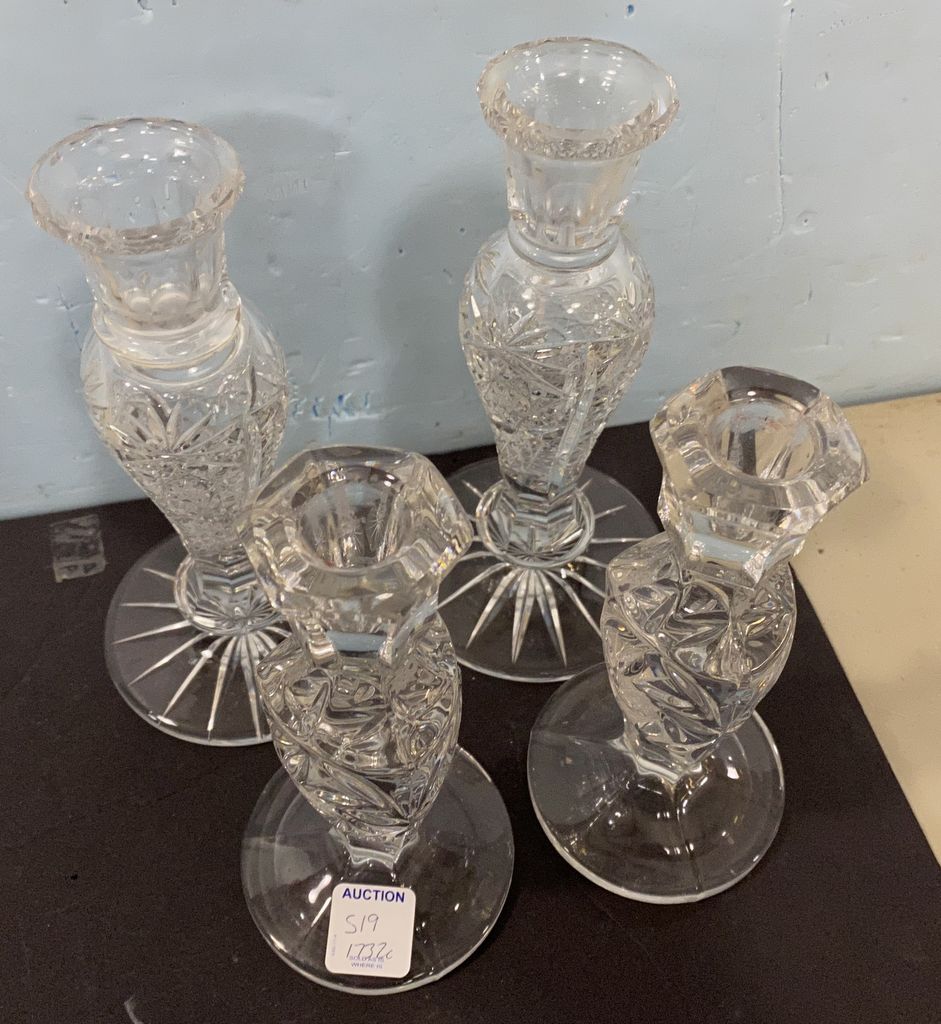 Two Pair of Crystal Candle Sticks, 8"h., 7"h. Two Pair of Crystal Candle Sticks, 8"h., 7"h.