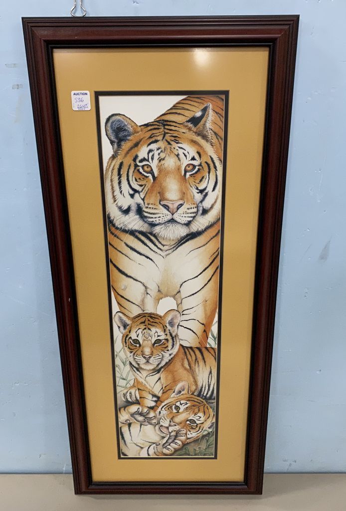 Debra Swartgendrugs Numbered Tiger Print, numbered 548/2100, frame is 32"h., 14"w. Debra Swartgendrugs Numbered Tiger Print, numbered 548/2100, frame is 32"h., 14"w.