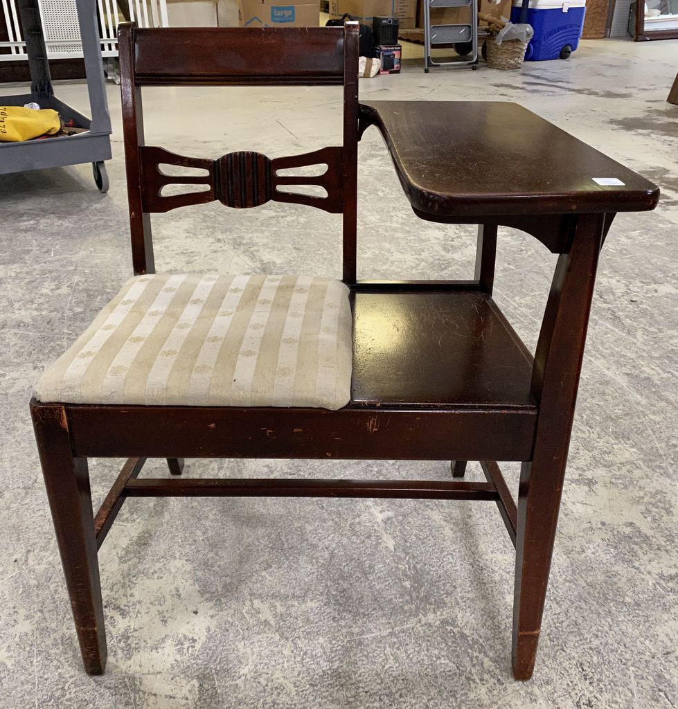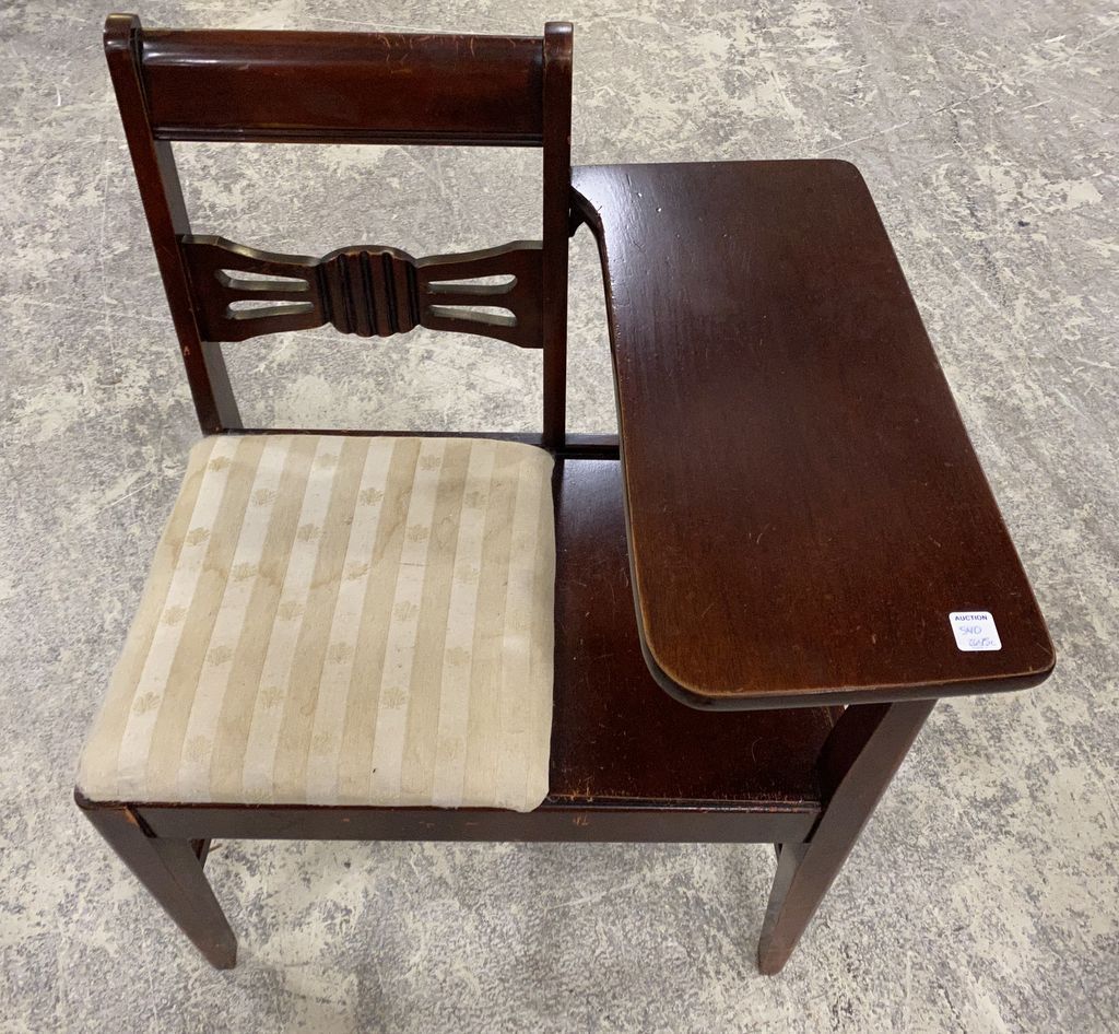 Mahogany Telephone Bench, vintage, has scratches on finish, no damage, 31"h., 27"w., 18"d Mahogany Telephone Bench, vintage, has scratches on finish, no damage, 31"h., 27"w., 18"d