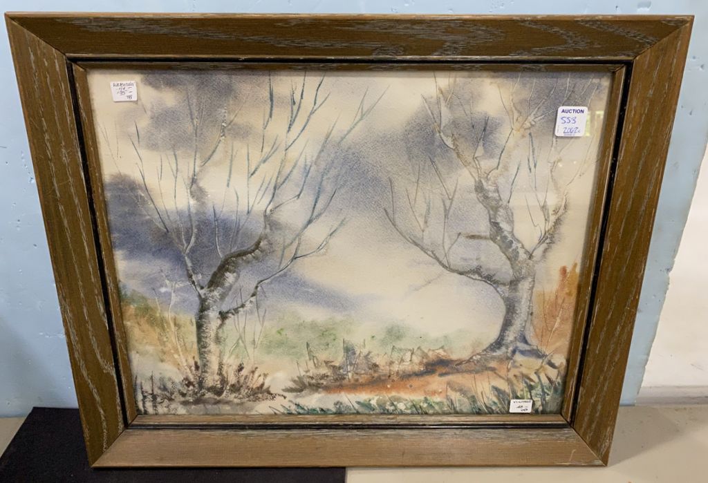 Framed Landscape Watercolor, 1950's-60's, unsigned, glassed, wood frame 17"h., 20"w. Framed Landscape Watercolor, 1950's-60's, unsigned, glassed, wood frame 17"h., 20"w.