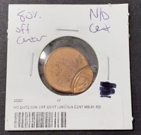 Lincoln Cent Off Center Strike Mint Error, 80 percent off center. Lincoln Cent Off Center Strike Mint Error, 80 percent off center.