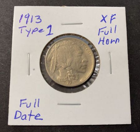 1913 Type 1 Raised Mount Buffalo Nickel, full date, full horn 1913 Type 1 Raised Mount Buffalo Nickel, full date, full horn