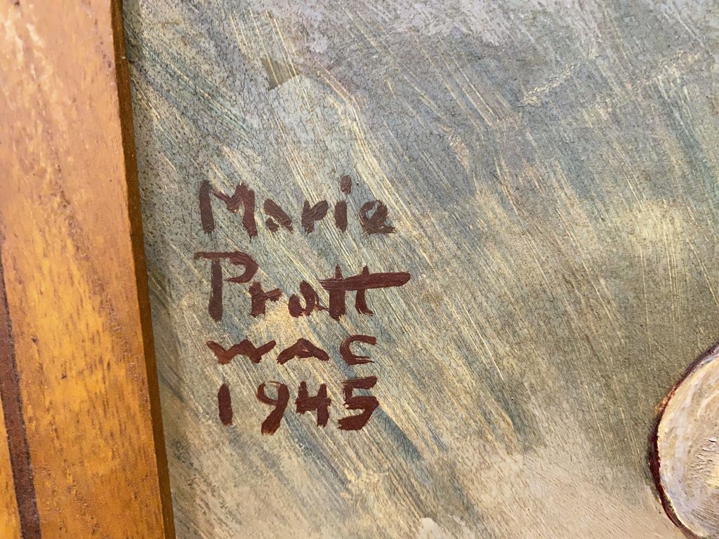 Marie Pratt WAC 1945 Painting of Soldier, on board, signed upper left, framed, 28"h., 21"w. Marie Pratt WAC 1945 Painting of Soldier, on board, signed upper left, framed, 28"h., 21"w.