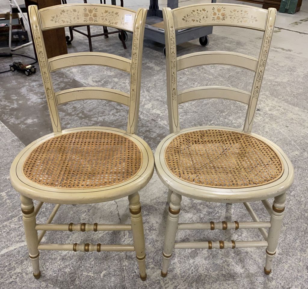 Pair of Painted Cane Bottom Chairs, factory painted. Pair of Painted Cane Bottom Chairs, factory painted.
