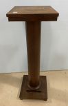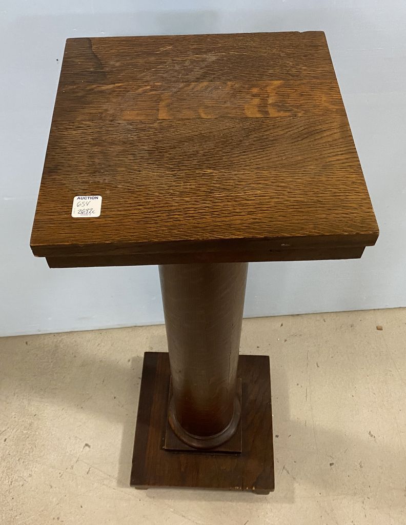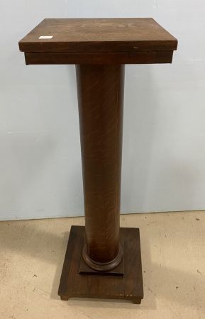 Oak Pedestal Stand, cylinder with square top and base footed, light wear, good condition, 36"h., 12"w. Oak Pedestal Stand, cylinder with square top and base footed, light wear, good condition, 36"h., 12"w.