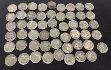 53 mixed dates dime, pre 1964, good conditon. 53 mixed dates dime, pre 1964, good conditon.