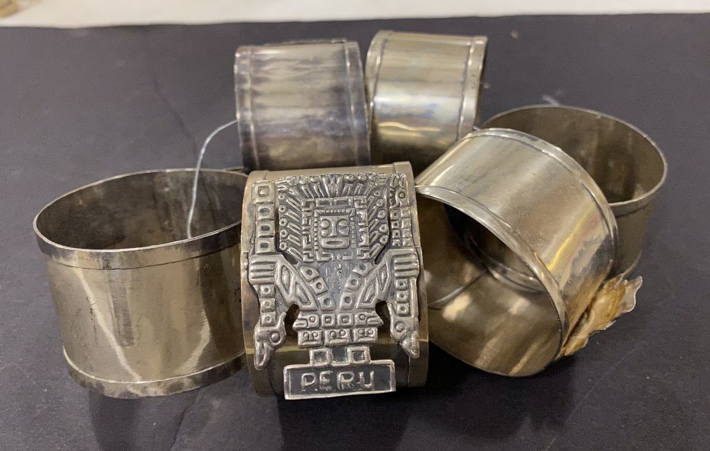 6 Peru Silver Napkin Rings, no silver mark, look to but silver. 6 Peru Silver Napkin Rings, no silver mark, look to but silver.
