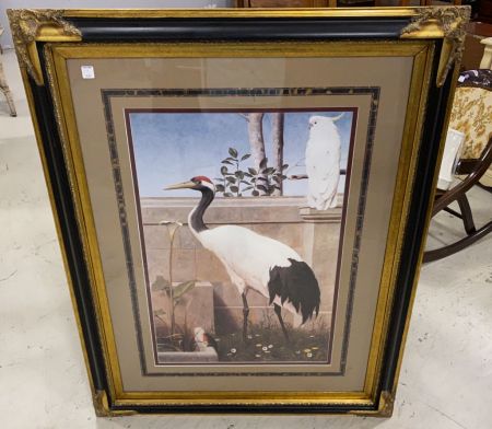 Image Gallery Large Bird Print, matted, glass, black and gold framed, modern piece, 47"h., 37"w. Image Gallery Large Bird Print, matted, glass, black and gold framed, modern piece, 47"h., 37"w.