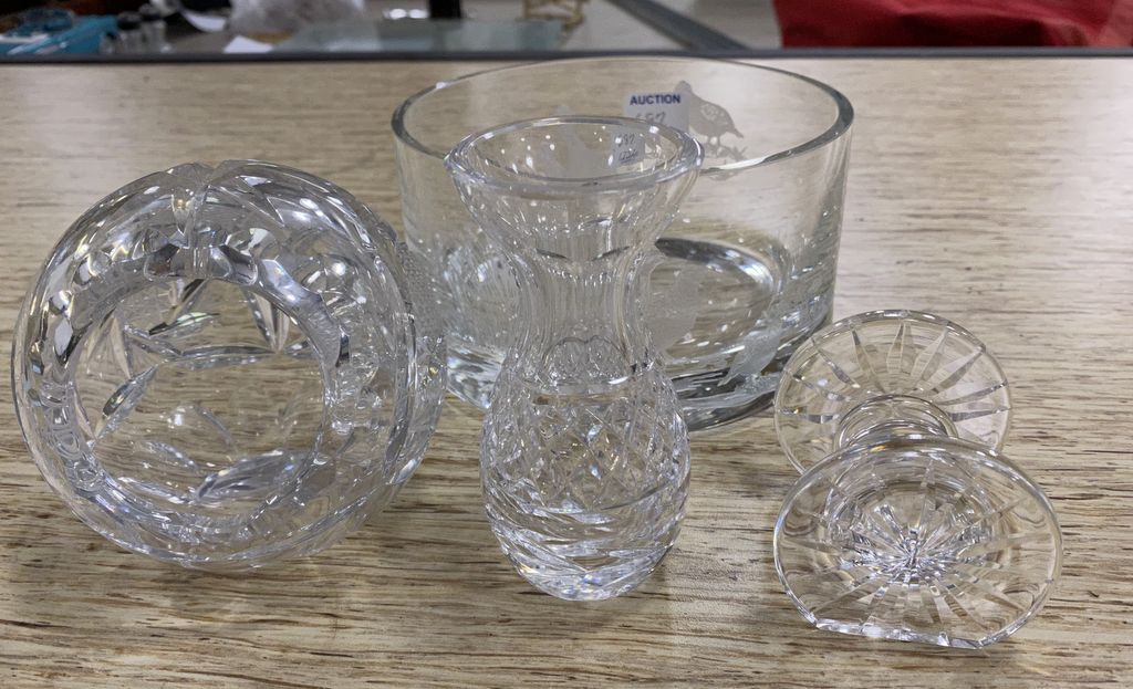 687 Signed Pheasant Bowl, Glass Vase, Knife Rest