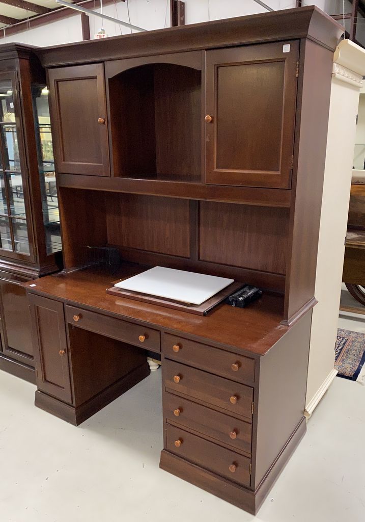 Hooker Furniture Cherry Computer Desk, two piece, top shelves, drawers, light wear, 79"h., 58"w., 26"d. Hooker Furniture Cherry Computer Desk, two piece, top shelves, drawers, light wear, 79"h., 58"w., 26"d.