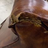 Chesterfield Style Camel Back Sofa, button tufted, vinyl/thin leather, from Warren Wrights, has some tears on back, 80"long. Chesterfield Style Camel Back Sofa, button tufted, vinyl/thin leather, from Warren Wrights, has some tears on back, 80"long.