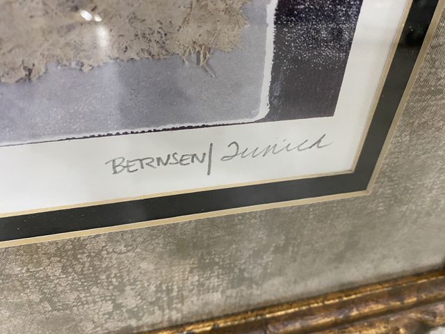 Chinese Poster Print Artist Signed Bernsen, matted, antiqued gold gilt framed, 30"h., 30"w. Chinese Poster Print Artist Signed Bernsen, matted, antiqued gold gilt framed, 30"h., 30"w.