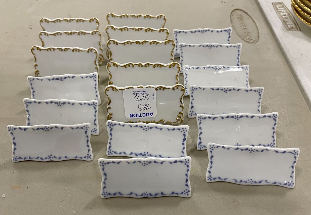 Group of Porcelain Name Plates, dinner, 19 total, matching 8 and 11. Group of Porcelain Name Plates, dinner, 19 total, matching 8 and 11.