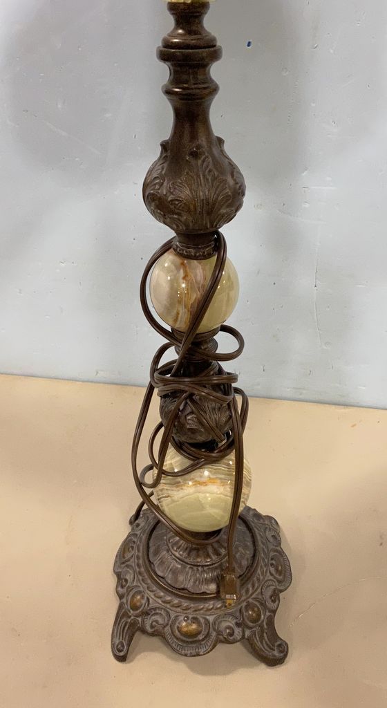 Bronze Jade Style Decorative Lamp, footed, included shade, 30"h. Bronze Jade Style Decorative Lamp, footed, included shade, 30"h.