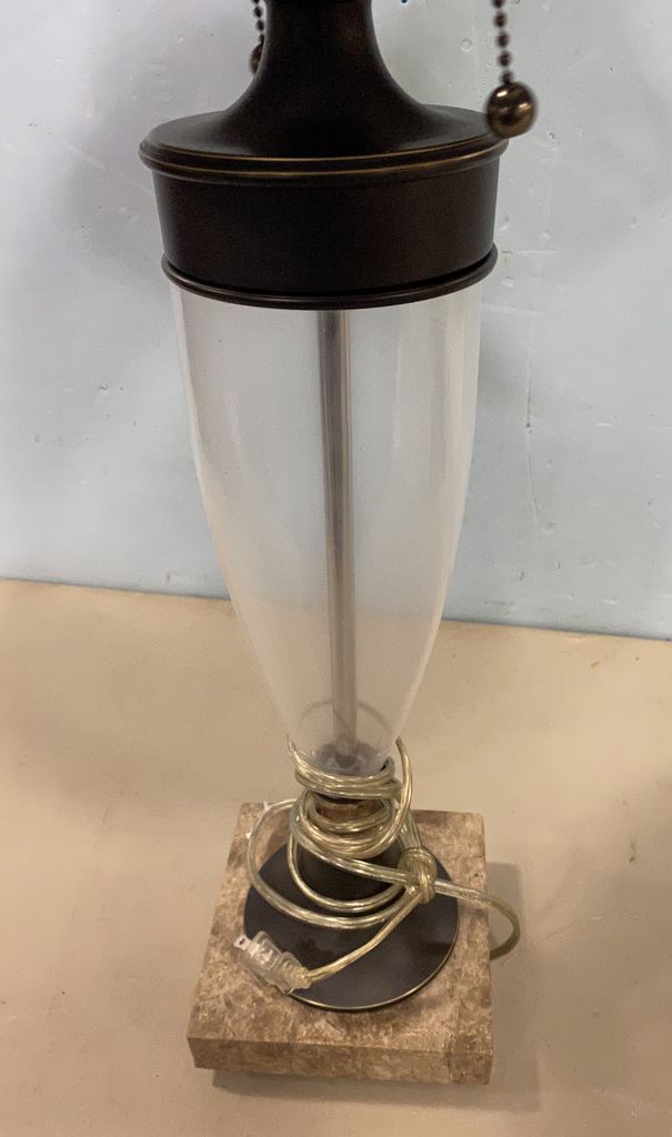 Decorative Smokey Glass Urn Lamp, faux marble base, included shade, 30"h. Decorative Smokey Glass Urn Lamp, faux marble base, included shade, 30"h.