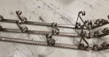 Three Italian Metal Shelving Wall Brackets, three slots, shelving not including, 90"h. Three Italian Metal Shelving Wall Brackets, three slots, shelving not including, 90"h.
