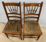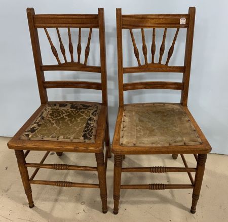 Pair of Vintage Oak Side Chairs, upholstered cushions, needs work. Pair of Vintage Oak Side Chairs, upholstered cushions, needs work.