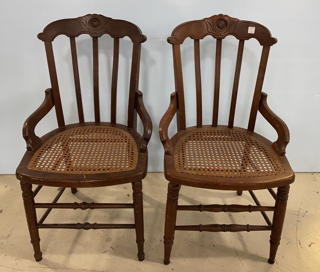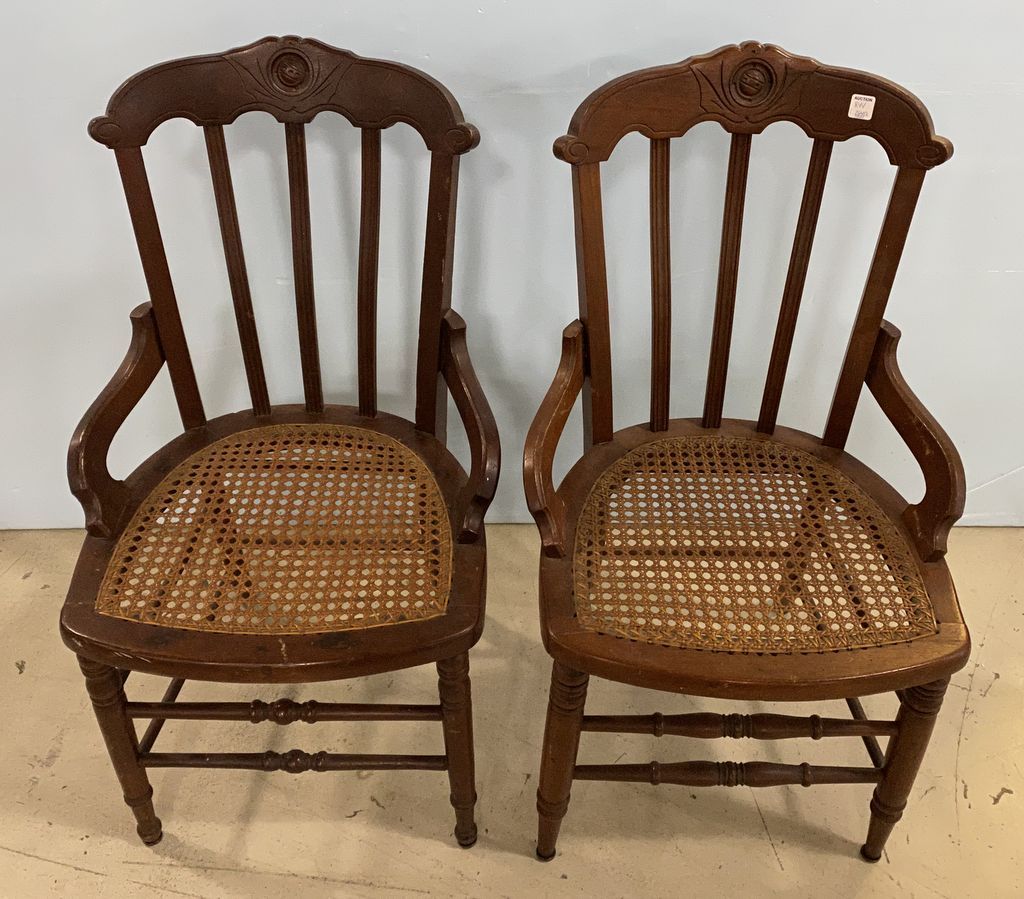Pair of Walnut Side Chairs, vintage reproduction, Caned bottom seats. Pair of Walnut Side Chairs, vintage reproduction, Caned bottom seats.