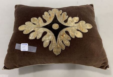 Small Red Felt Pillow, with stitched medallion, 15"w. Small Red Felt Pillow, with stitched medallion, 15"w.