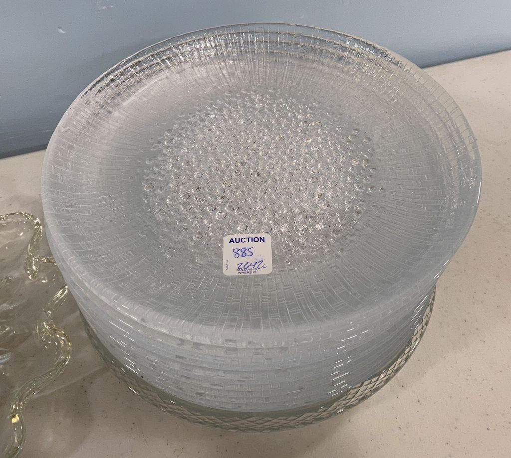 885 14 Frosted Glass Plates and Glass Egg Tray 11"dia.