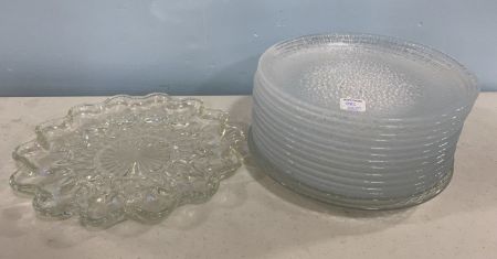 14 Frosted Glass Plates and Glass Egg Tray 11"dia. 14 Frosted Glass Plates and Glass Egg Tray 11"dia.