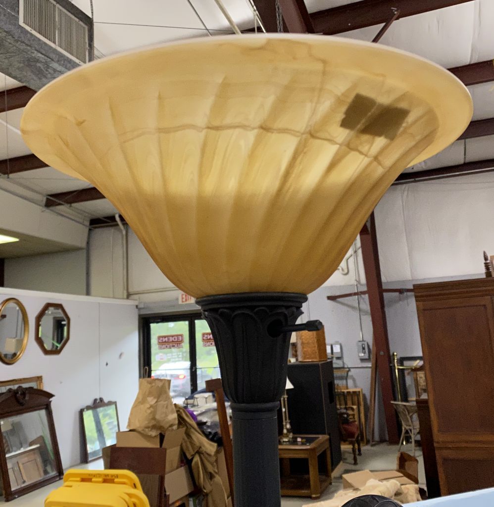 Modern Torchiere Floor Lamp, glass shade, 70"h. Modern Torchiere Floor Lamp, glass shade, 70"h.