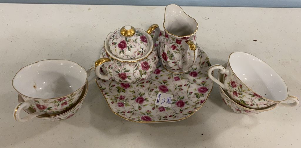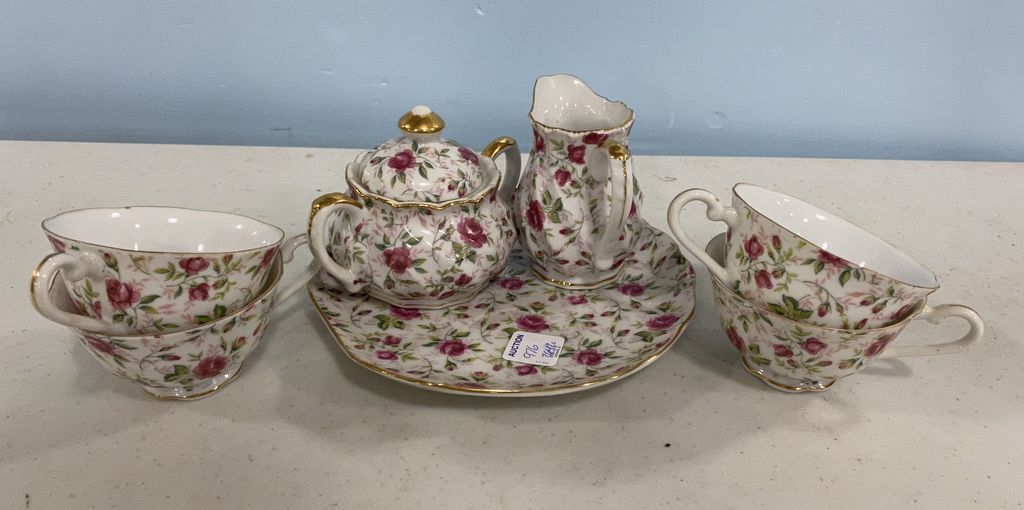 976 Lefton China Hand Painted Cups, Creamer, Luncheon Plate