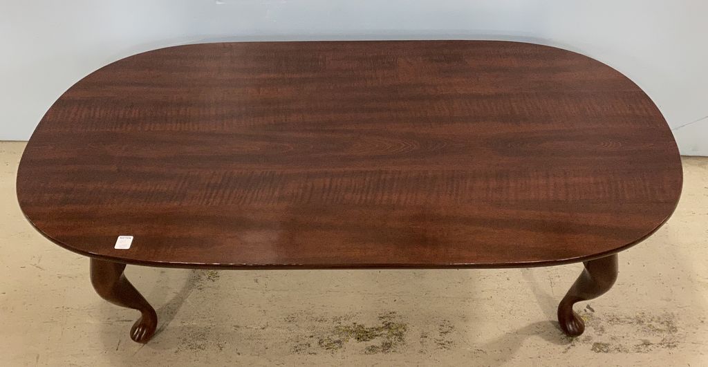 Modern Queen Anne Pressed Wood Oval Coffee Table, cherry color, good condition, 16"h., 50"w. Modern Queen Anne Pressed Wood Oval Coffee Table, cherry color, good condition, 16"h., 50"w.