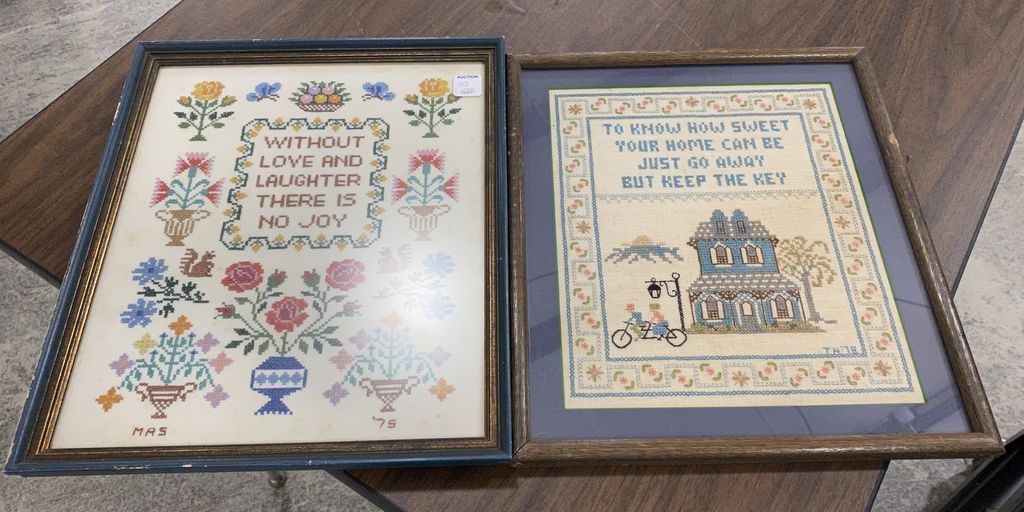 Two 1970's Needle Point Samplers, Without Love and Laughter MAS 1975, To know how sweet your home can be, TH 1978, 15"h., 13"w. Two 1970's Needle Point Samplers, Without Love and Laughter MAS 1975, To know how sweet your home can be, TH 1978, 15"h., 13"w.