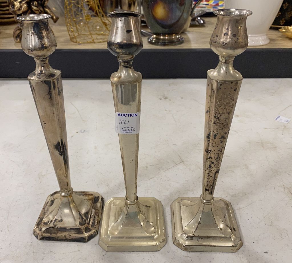 1121 Three Weighted Sterling Candle Sticks