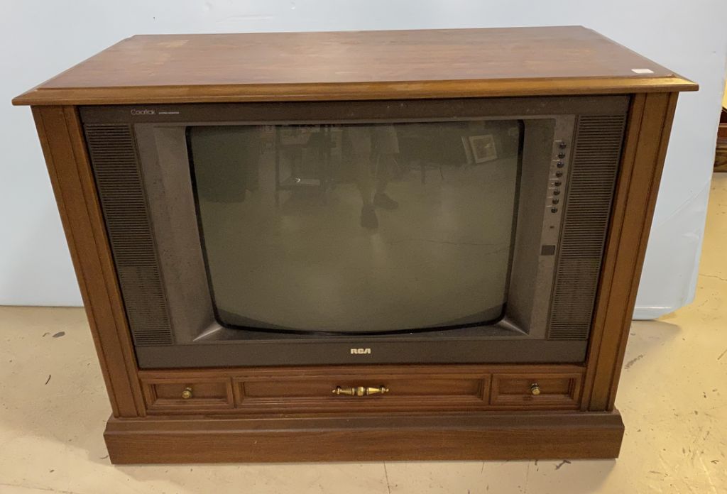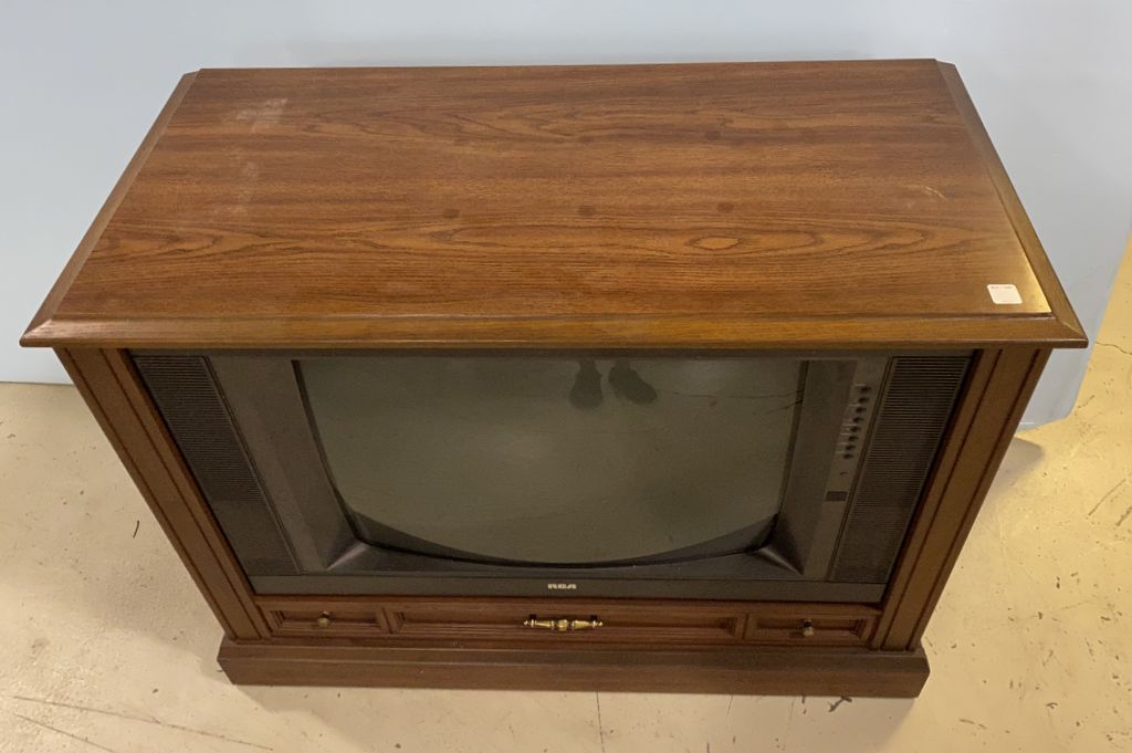 RCA TV Cabinet, tube tv, 1970's -80's, oak finish, untested, 28"h., 38"w., 19"d. RCA TV Cabinet, tube tv, 1970's -80's, oak finish, untested, 28"h., 38"w., 19"d.