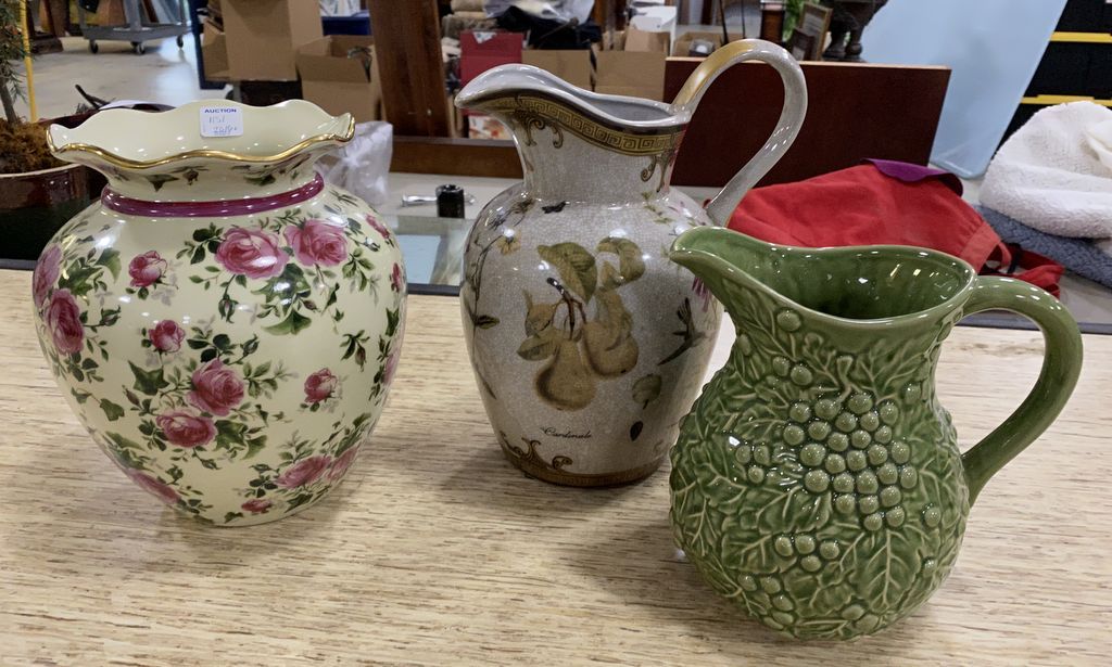 1151 Two Ceramic Pottery Pitcher and Porcelain Flower Vase