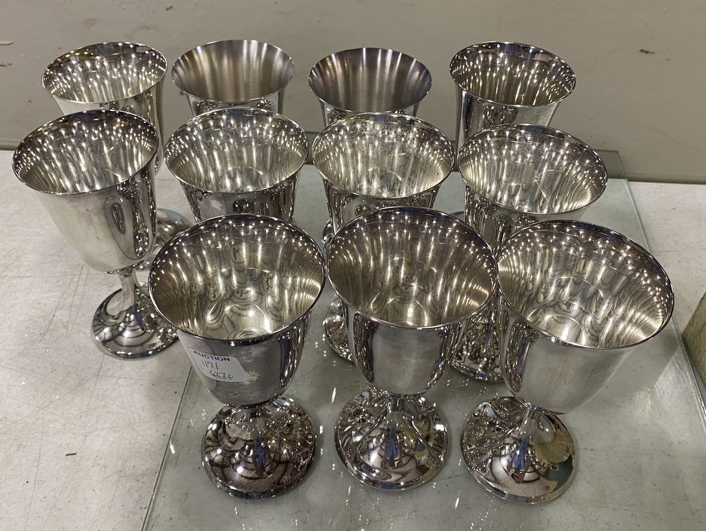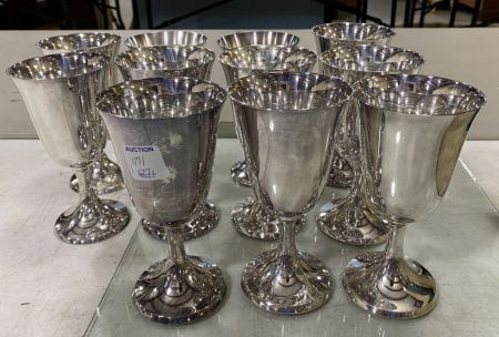 11 Silver Plate Goblets, 9 matching goblets, 7". 11 Silver Plate Goblets, 9 matching goblets, 7".