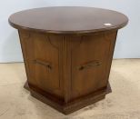 1970's-80's Round Lamp Table, double doors, light finish, 20"h., 26"dia. 1970's-80's Round Lamp Table, double doors, light finish, 20"h., 26"dia.