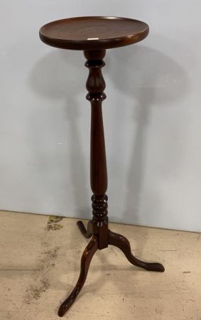 Cherry Plant stand, pedestal base footed, round top, 40"h., 11"dia. Cherry Plant stand, pedestal base footed, round top, 40"h., 11"dia.