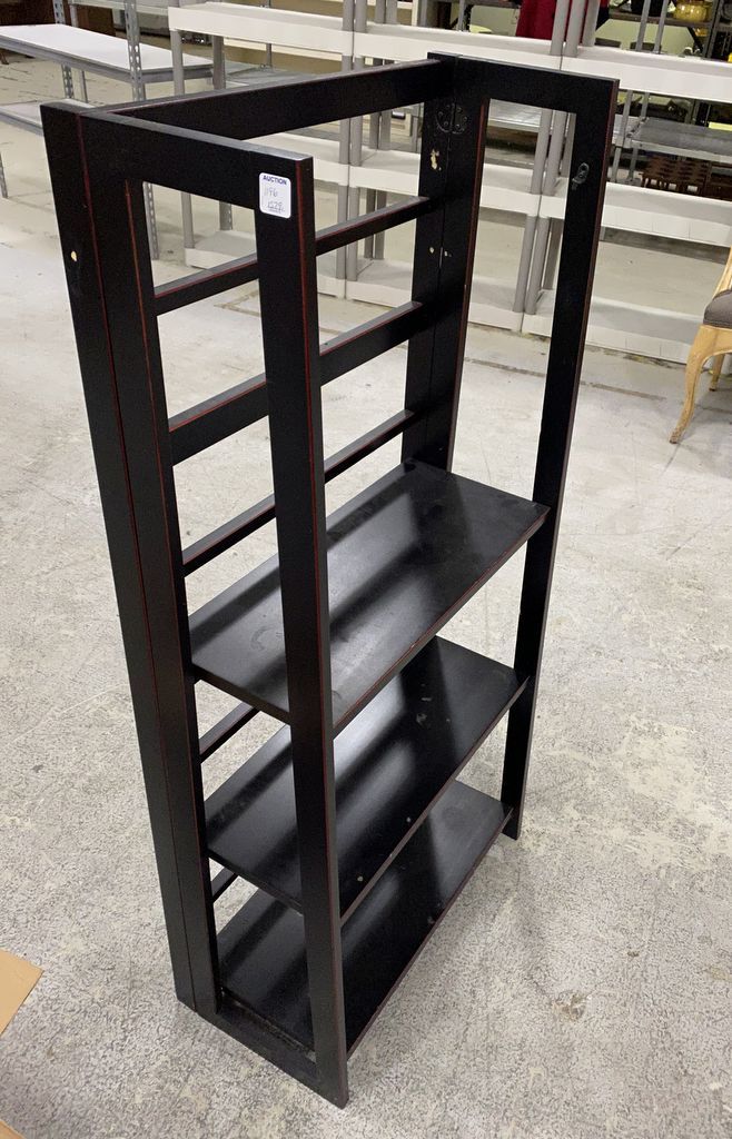 Fold Out Back Storage Shelf, 3 shelves, one shelf missing,49"h., 23"w. Fold Out Back Storage Shelf, 3 shelves, one shelf missing,49"h., 23"w.