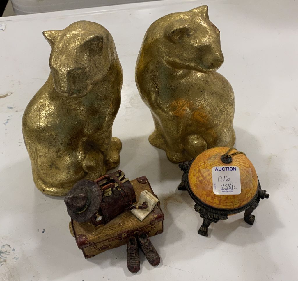 1216 Pair of Resin Gold Gilt Cougars and Trinket Boxes