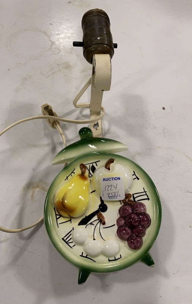 Porcelain Clock Design Wall Lamp, vintage, metal frame, 10"h. Porcelain Clock Design Wall Lamp, vintage, metal frame, 10"h.