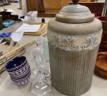 Decorative Metal Canister, Pair of Crystal Candle Sticks, Plastic Bowls Decorative Metal Canister, Pair of Crystal Candle Sticks, Plastic Bowls
